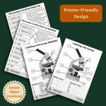 - Microscope Labellingย Worksheets: Clear diagrams for identifying all 10 key parts of the microscope.